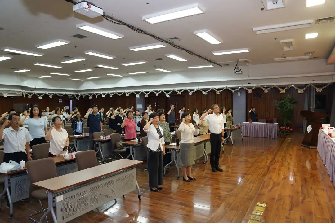 大会在雄壮的国歌中开始。与会人员面向党旗,重温入党誓词,在党的生日这一天以铮铮誓言表达对党忠诚、为党奋斗的坚定决心。