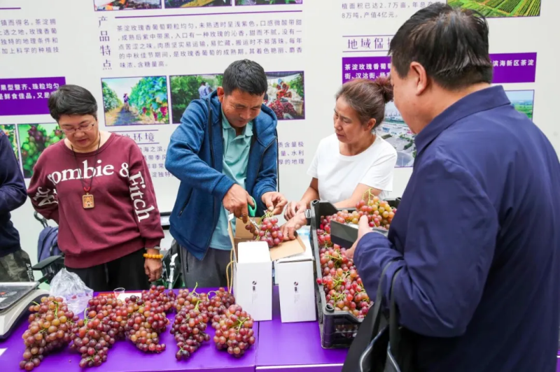 与此同时,海河乳品与茶淀街道联合推出“玫瑰香雪泥”、山海关汽水与茶淀街道联合推出“茶淀玫瑰香葡萄味果汁汽水”,将葡萄风味融入乳制品与饮品,引发现场嘉宾争相品尝。