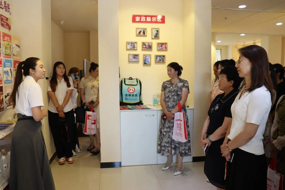 代表团参访津南区德瑞培训学校妇女创业就业基地、巾帼家政实训基地