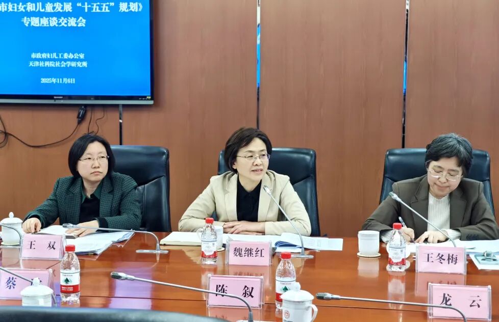 11月6日下午,天津市妇女儿童发展“十五五”规划编制专题座谈交流会在社科院召开。会议旨在深入贯彻落实党的二十届四中全会和习近平总书记在全球妇女峰会上的主旨讲话精神,科学谋划未来五年全市妇女儿童事业发展蓝图,广泛听取社会各界意见建议,凝聚发展共识。市政府妇儿工委副主任、市妇联主席魏继红出席并讲话。市妇联二级巡视员杨健,天津社科院副院长、研究员王双和社会学研究所专家学者,市区人大代表,市政协委员,各级妇女工作者和妇女群众等代表参加。