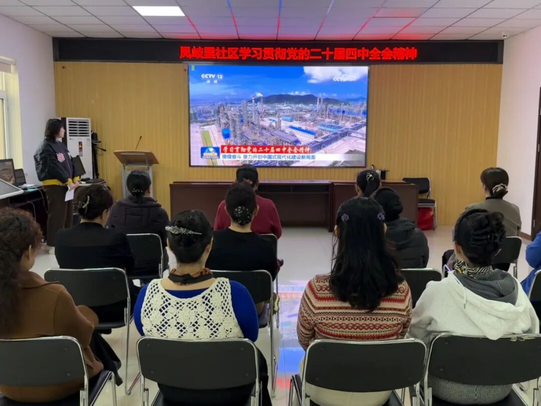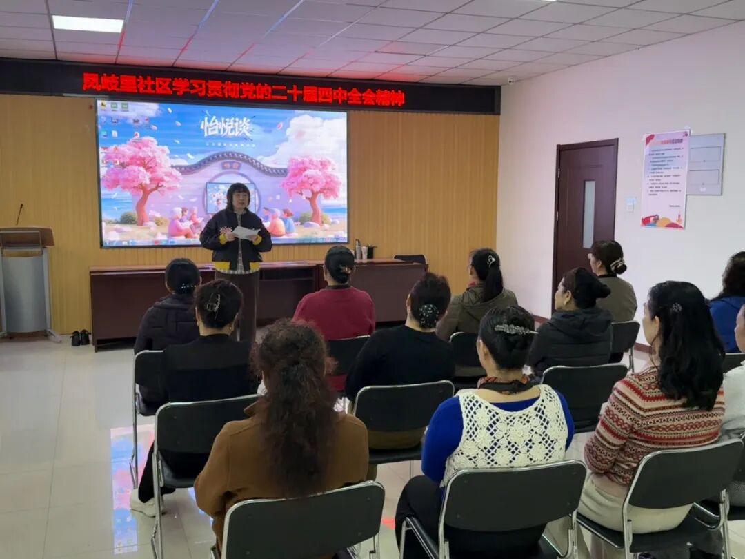 为深入学习宣传贯彻党的二十届四中全会精神,切实把辖区党员和妇女群众的思想和行动统一到全会决策部署上来,凤岐里社区妇联开展学习宣讲活动,推动党的二十届四中全会精神在基层落地生根。