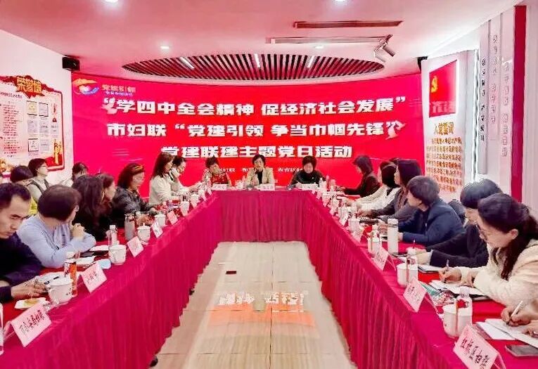 为认真学习贯彻党的二十届四中全会精神和市委十二届七次全会精神,进一步深化模范机关、文明机关创建,日前,市妇联会同和平区、西青区妇联联合开展“学四中全会精神 促经济社会发展”党建联建主题党日活动。在交流研讨环节,大家各抒己见,谈感受、说体会,纷纷表示新时代新征程将坚持“党建引领,争当巾帼先锋”,努力以高质量机关党建促进高质量发展,为奋力谱写中国式现代化天津篇章贡献巾帼力量。