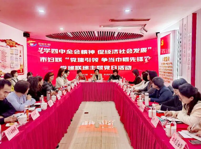 为认真学习贯彻党的二十届四中全会精神和市委十二届七次全会精神,进一步深化模范机关、文明机关创建,日前,市妇联会同和平区、西青区妇联联合开展“学四中全会精神 促经济社会发展”党建联建主题党日活动。在交流研讨环节,大家各抒己见,谈感受、说体会,纷纷表示新时代新征程将坚持“党建引领,争当巾帼先锋”,努力以高质量机关党建促进高质量发展,为奋力谱写中国式现代化天津篇章贡献巾帼力量。