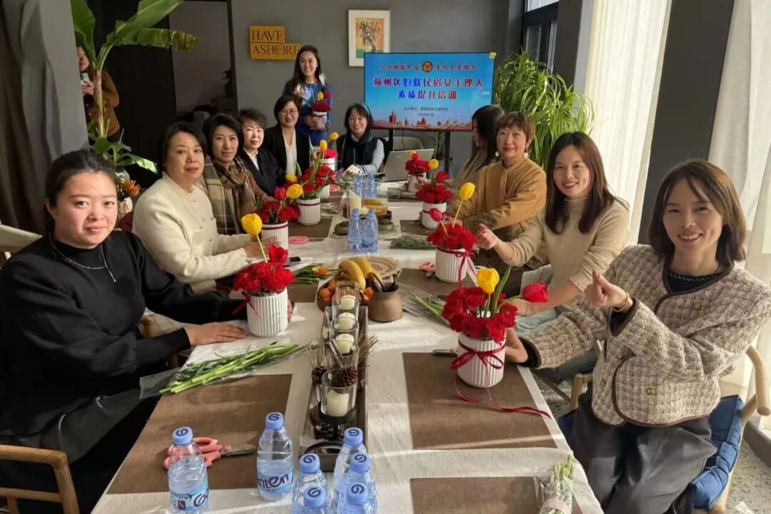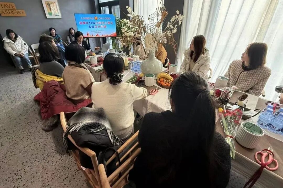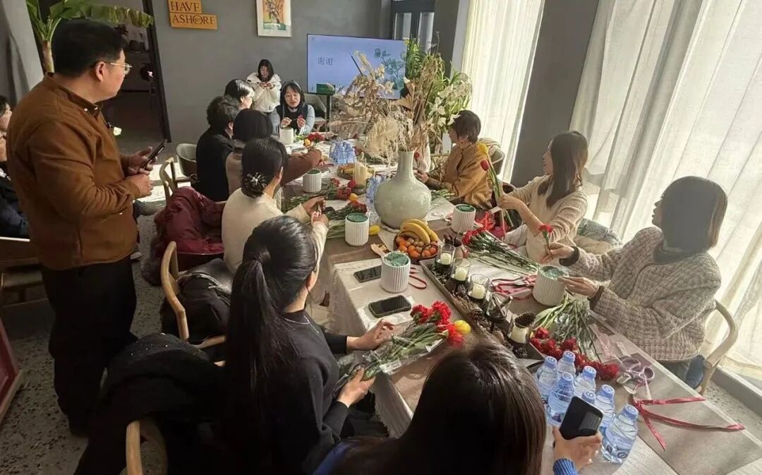 如果说家政服务解决了民宿的“里子”,那么指尖技艺则装点了民宿的“面子”。在民宿场景打造环节,优秀巾帼民宿主理人苏梦柳不仅分享了指尖技艺赋能经营的鲜活案例,更聚焦新春场景,特邀花艺老师指导大家将插花作品转化为兼具装饰性与纪念性的年味儿好物——无论是点缀民宿大堂的主题花艺,还是可作为伴手礼的迷你福桶、新年挂饰,都让手工花束成为民宿的“新春加分项”。