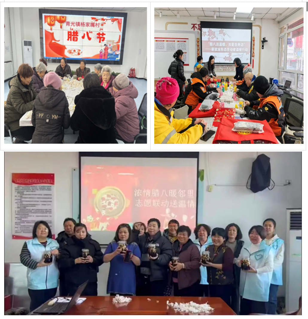 青光镇铁锅店村、杨家嘴村妇联聚焦民俗传承与敬老爱老,组织村民共制腊八蒜、分享传统习俗,同时面向老人、失独家庭开展精准关爱,上门送上粥与蒜,细致询问生活需求与健康状况。