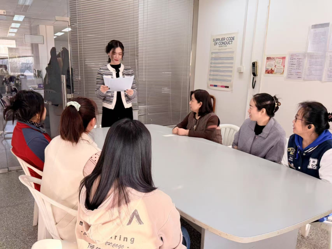 第二场,北辰区三八红旗手王洋走进天津辰峰织带有限公司党员活动室,以“三束光映巾帼志—基层妇女践行党的二十届四中全会精神”为主题开展宣讲,公司党员、积极分子及女性职工代表现场聆听。王洋结合自身作为企业党建负责人、安全环保“守门人”、国际贸易“开拓者”的多重经历,以“信仰之光、奋斗之光、担当之光”为核心,分享学习贯彻全会精神的深刻感悟,号召女性党员争做“追光者、发光体、传光者”,在各自岗位上践行实干担当,充分展现了基层妇女在党建引领下的巾帼风采。