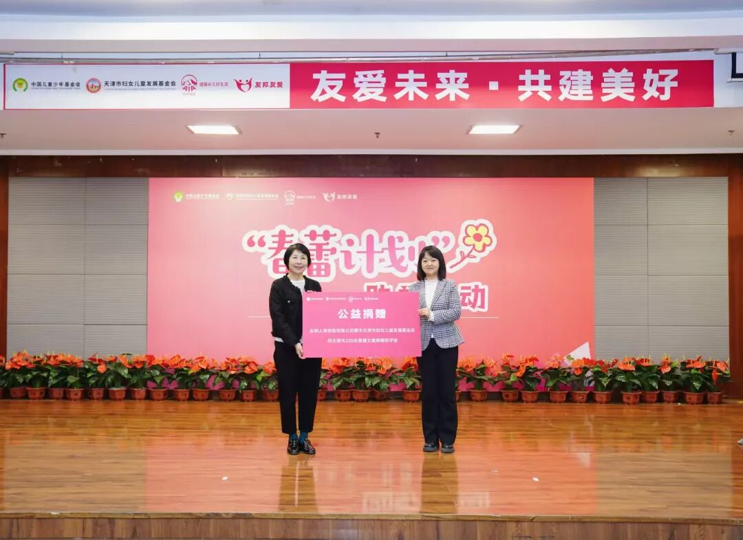 活动现场,友邦人寿向天津市妇女儿童发展基金会捐赠善款26.4万元,专项资助我市16个区、156所小学的220名小学春蕾女童。