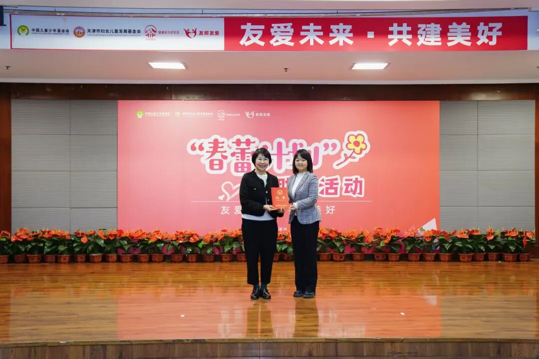 友邦人寿向天津市妇女儿童发展基金会递交捐赠牌