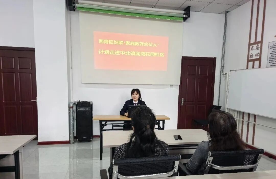 为深入推进西青区“家庭教育合伙人计划”,切实提升家庭教育指导的专业性、规范性,构建全方位、多层次的家庭教育指导服务体系,强化妇女儿童权益保护合力,近日,西青区妇联联合西青区检察院深入中北镇澜湾花园社区开展“与法‘童’行,为爱赋能”家庭教育专题活动,为50余位未成年人及家长带来家庭教育专题讲座。